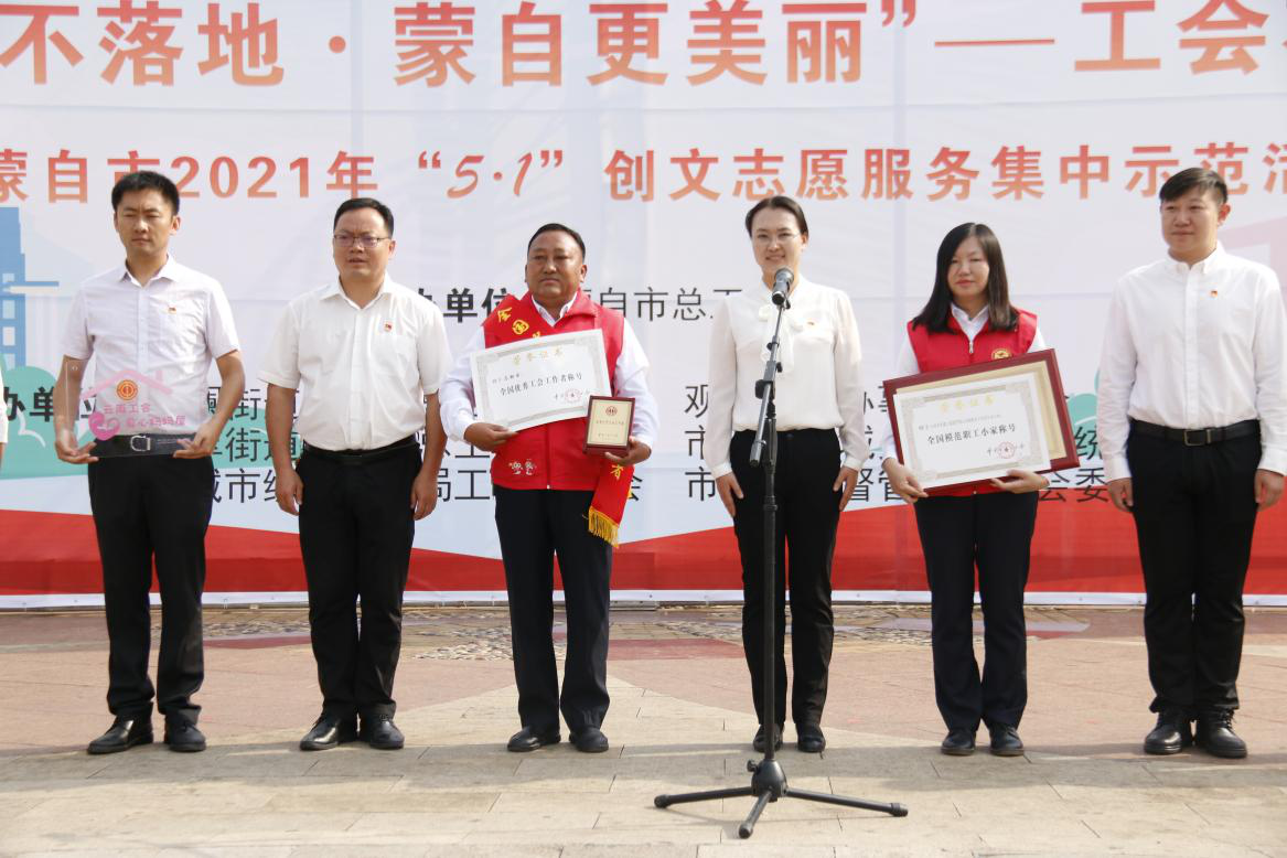 4月30日,蒙自市總工會(huì)在南湖廣場開展“煙頭不落地·蒙自更美麗”志愿服務(wù)集中示范活動(dòng)暨“全國模范職工小家”、“全國優(yōu)秀工會(huì)工作者”頒獎(jiǎng)儀式,...